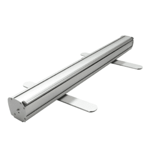 Easy to use retractable stand holds 36″ (width) x 92″ (height) banner.
